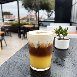 Blame it on the Spruce! Gotcha feeling loose! Blame it on the So! Gotcha in the zone! Cause i don't need Alcohol! I definitely don't need it if I can get a natural buzz of their coffee by Ritual roasters. As soon as I saw that brand on that shelf I automatically knew I was going to be buzzing out of there. I ordered the popular bumblebee, so this drink was a mixture of orange juice and espresso and it blended really well once swirled together. We also had the Havana that had condensed milk and something else I can't quite remember but it was good. I also had the cold brew topped with cold foam and this was legit. Let's just say the three drinks we ordered were on point with flavor and presentation. There's nothing like having coffee in a mug or glassware plus the service was spot on the couple times I've been. Spacious indoor and outdoor seating are also in effect. And that's my take on this buzz worthy coffee house, Peace out...